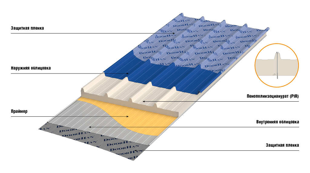 PIR-наполнитель обеспечивает низкий коэффициент теплопроводности панелей.